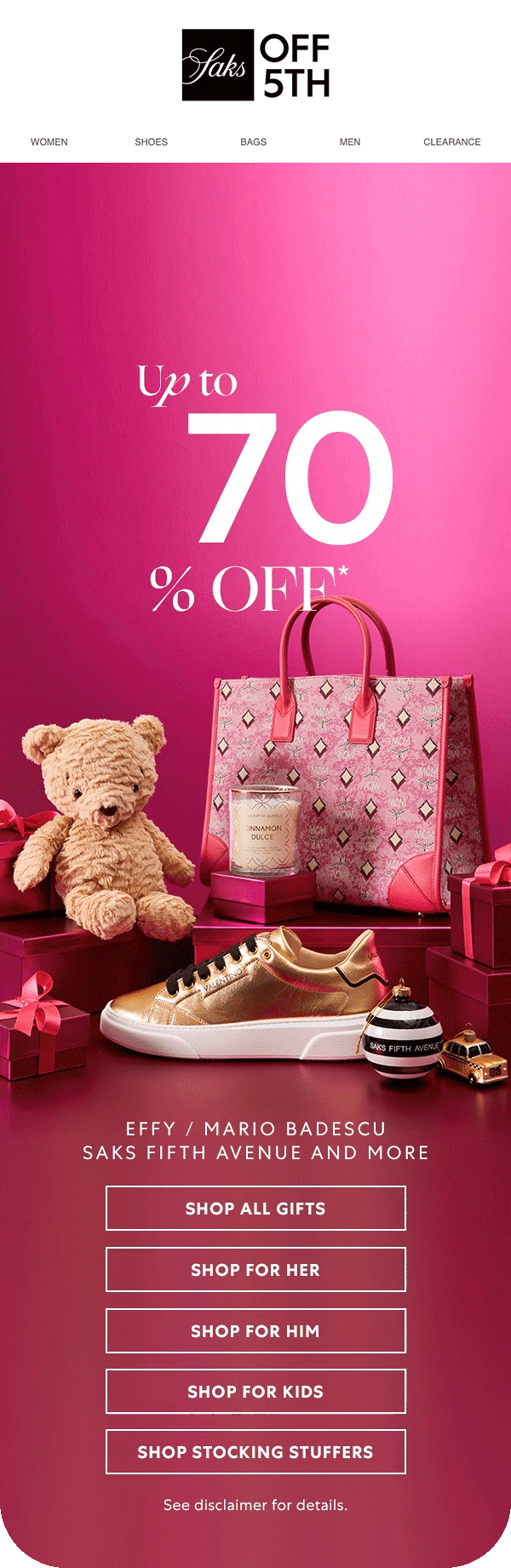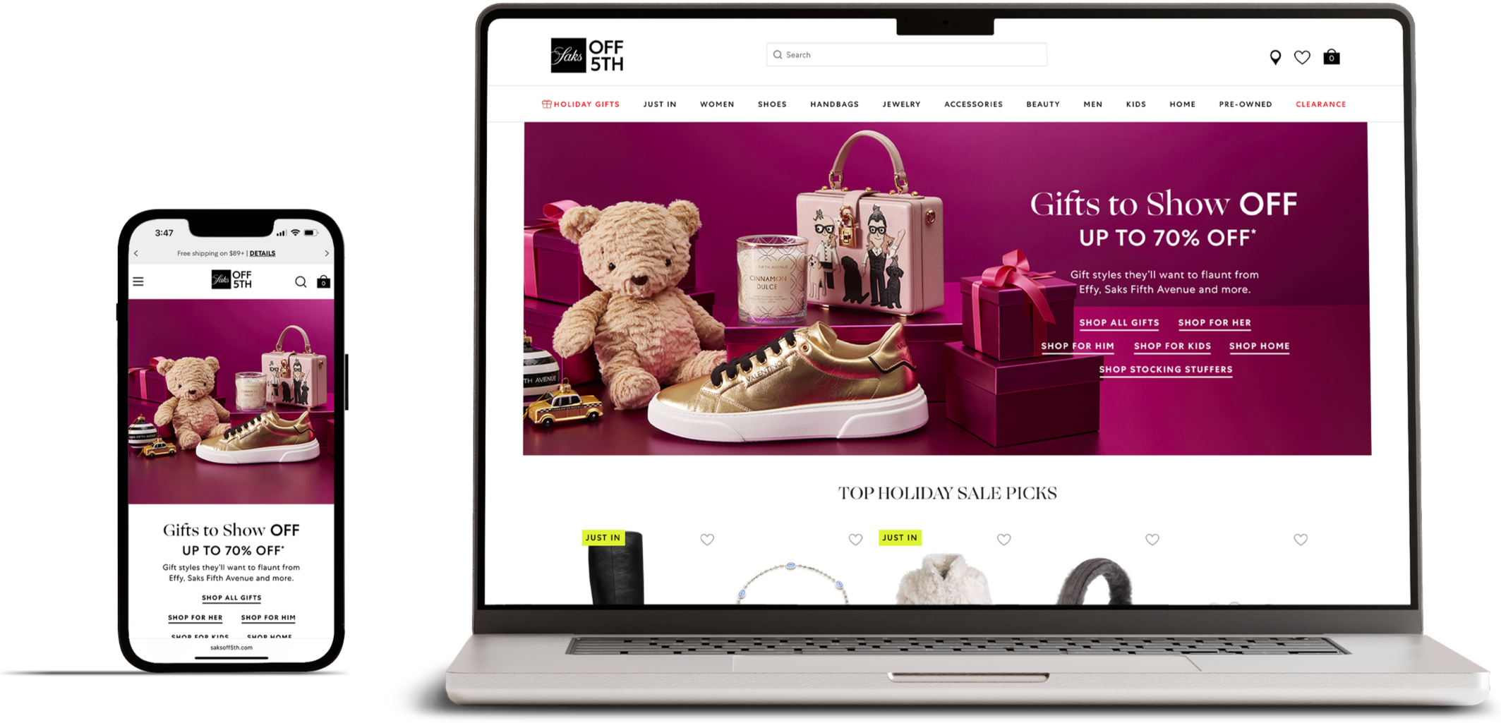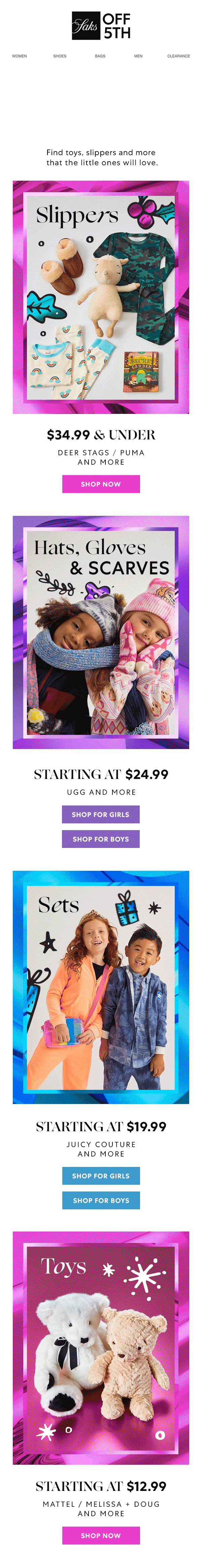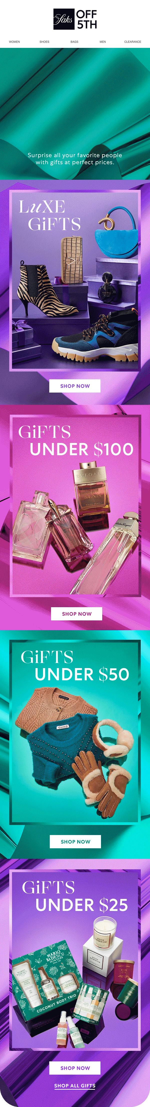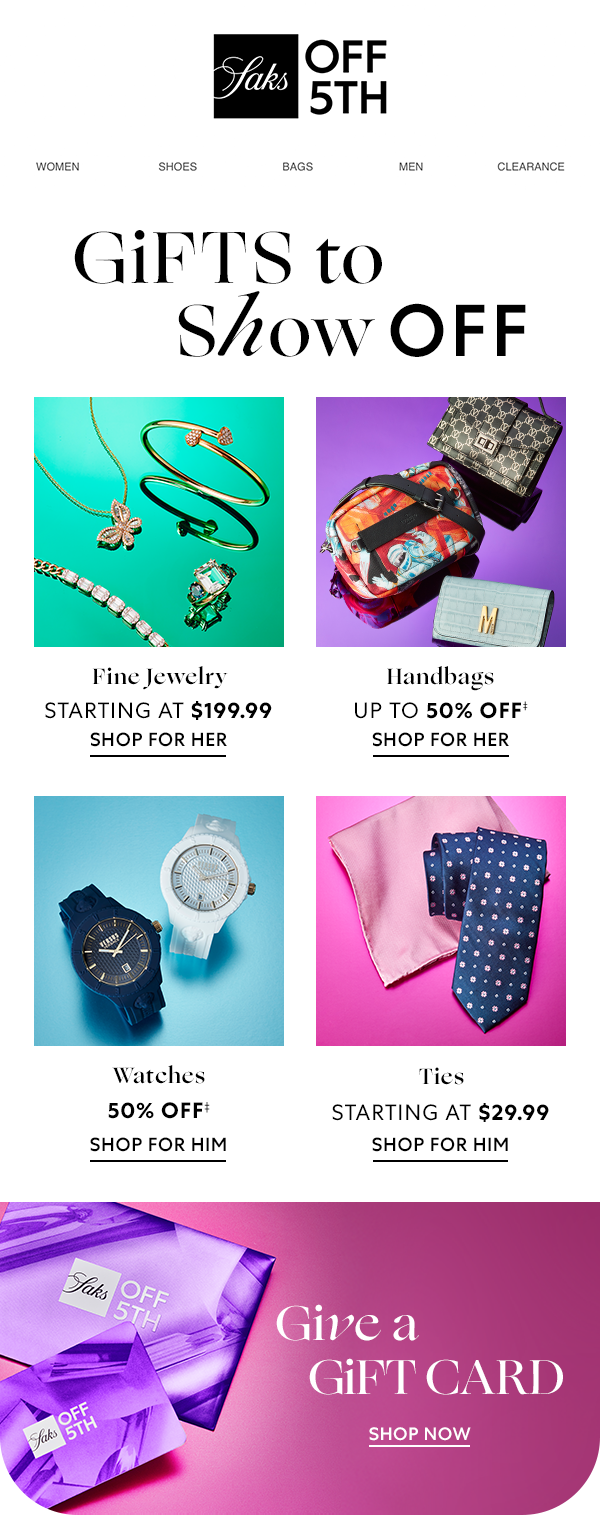 Reinforce Saks OFF 5TH as the destination for all holiday gifting and style needs by leading with clear value while preserving the warmth and personality of the brand.
