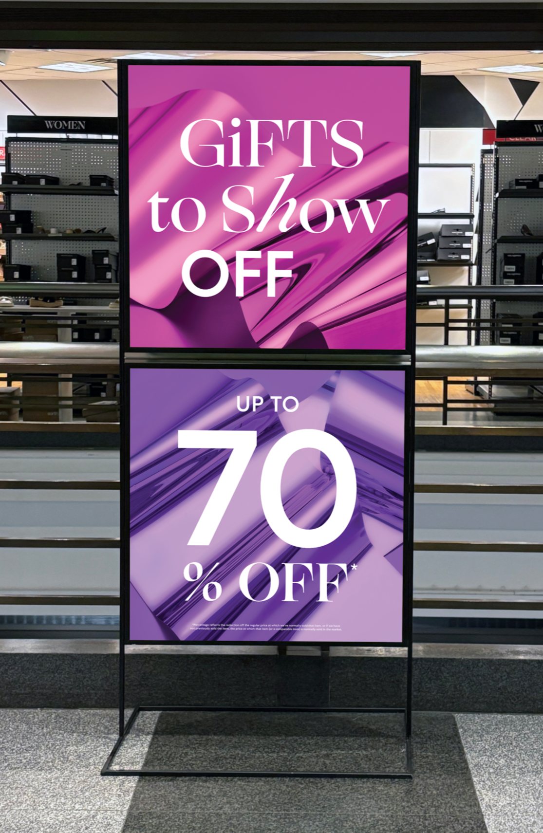 The campaign extended across a 360° holiday system, layering festive mylar textures and playful typography to keep value front and center.